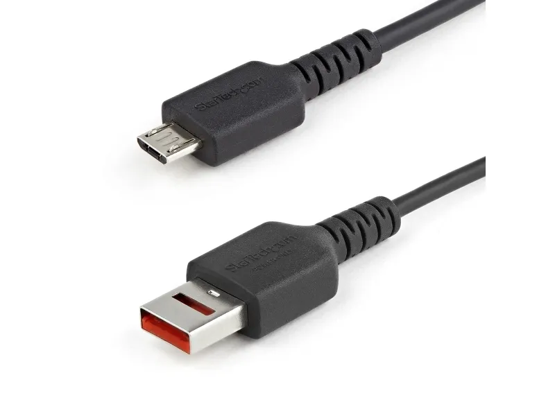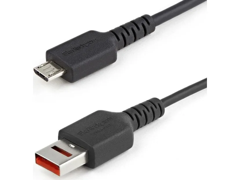 Denna USB-A- till USB Micro B-datablockerarkabel gör att du kan ladda din enhet säkert genom att upprätta en strömförbindelse mellan din enhet och värdsystemet eller strömkällan. Utrustad med USB-A-kontakt (hane) utan data med en unik cut-away-design, denna säkra kabel förhindrar skadliga attacker och datastölder och tillhandahåller ett säkert sätt att ladda dina mobila enheter. USB-A till Micro B-kabel (endast strömsättning) USB-A-porten hos denna kabel har inga fysiska datastift vilket innebär en kabel med fysisk barriär för dataöverföring. Denna adapter gör att du kan ladda dina mobila enheter från en bärbar eller stationär dator och eliminerar samtidigt: Datastöld från värddatorn Datakorruption på värddatorn Spionprogram/skadlig kod och virus som överförs från den mobila enheten till värdnätverket Praktisk kabel för daglig användning Bärbar kabel på 1 m som får plats i din ficka eller laptopväska och låter dig säkert ladda dina smarttelefoner, surfplattor, hörlurar, kameror m.m. på offentliga laddningsstationer/portar på flygplatser, hotell och restauranger. Frånvaron av datalinjer gör även dessa kablar säkra att använda på myndigheter, försvarsdepartement, företag och i utbildningsmiljöer där anslutning av din mobila enhet kan vara förbjuden. Smart, kraftfull and mångsidig kabel Kabel med hög kapacitet med 22AWG (0,34 mm²) strömkablar som levererar 5 V upp till 2,4 A (max 12 W). Smart inbyggt chip som identifierar enhetens effektbehov och justerar uteffekten därefter. Kontakter av industristandard som låter dig ladda alla dina USB Micro B-aktiverade enheter från alla USB-A-uttag - från värddatorer till väggladdare Robust och pålitlig konstruktion Kabelns mantel och kontakt är av stark TPE-plast som ger bättre flexibilitet och hög motståndskraft mot slitage och repor som gör den idealisk för vardaglig användning. Aluminium-Mylar folie som ger ljudfri likström till din enhet. Omfattande produkttestning och teknisk support från experter StarTech.com utför grundlig kompatibilitets- och prestandatestning på alla våra produkter för att säkerställa att vi möter eller överträffar branschstandarder och tillhandahåller högkvalitativa produkter till våra kunder. Våra lokala tekniska rådgivare på StarTech.com har en bred produktkompetens och arbetar direkt med StarTech.com: s ingenjörer för att ge stöd till våra kunder både före och efter försäljning.