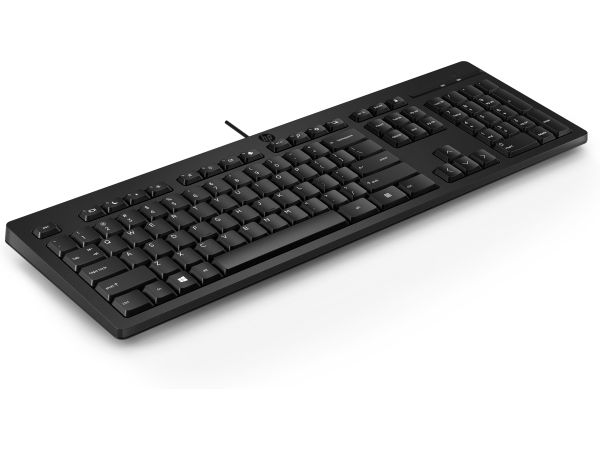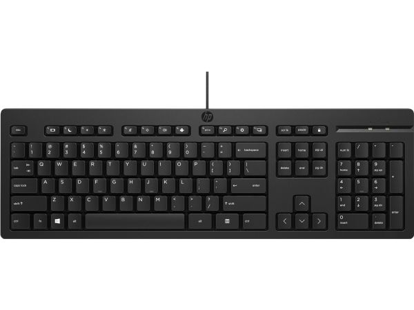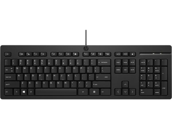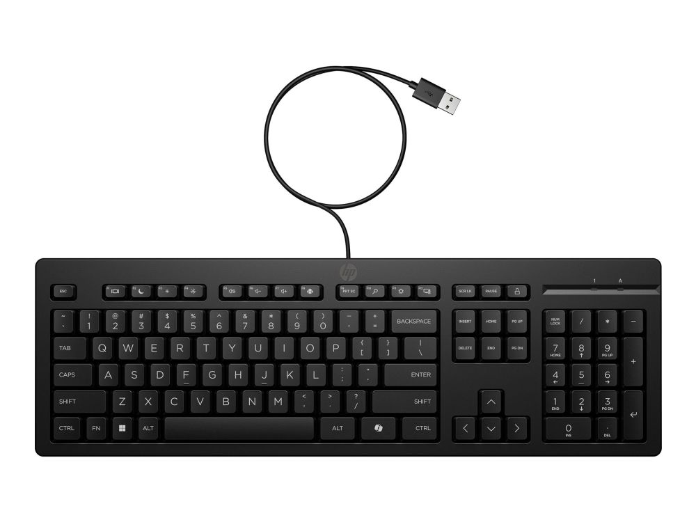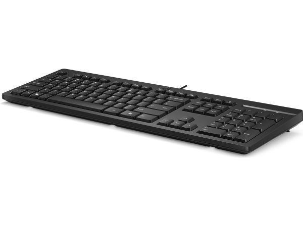 Det trådbundna tangentbordet HP 125 i full storlek med tre zoner har justerbara fötter på 0-6 grader så att du kan skriva bekvämt. Dessutom påminner en LED-indikator för Caps, Number och Function Lock dig enkelt om när dessa funktioner är aktiva.