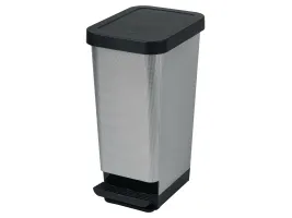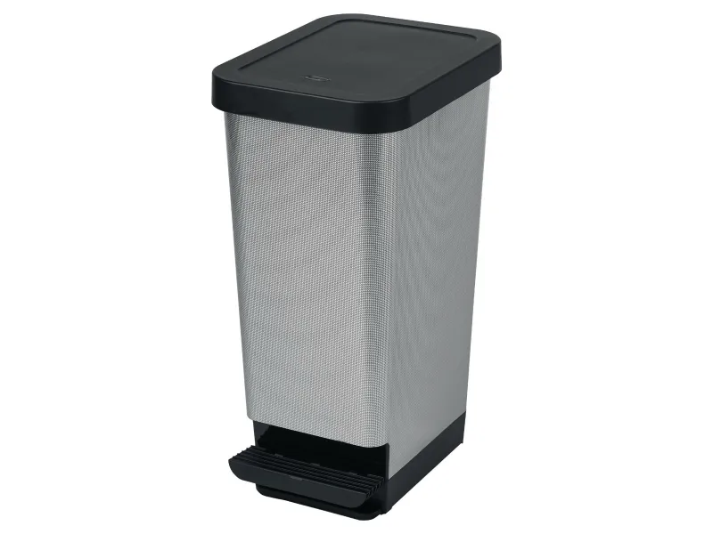 Avfallsbehållare, Cep. Liten 45 L avfallsbehållare i plast med pedal. Luktfri och handfri avfallshantering, idealisk för köksavfall. Avfallsbehållaren är tillverkad av återvinningsbar polypropylen och har en tät förslutning som håller dålig lukt borta. Behållaren öppnas enkelt med den breda fotpedalen och halkfria gummifötter säkerställer en god kontakt med marken. Mått: HxBxD: 60,5 x 44,5 x 29 cm Beställningsenhet: st.