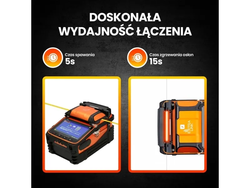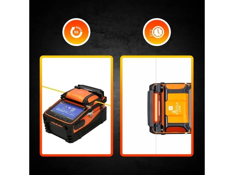 Extralink AI-9 is an innovative solution on the market of fiber optic welders. It combines simplicity of use, which will be appreciated by novice users, and advanced positioning and welding techniques, which will be appreciated by experienced welders. The welder operates on different types of fibers, both Singlemode and Multimode. AI series welders stand out with an innovative way of device configuration - all settings are made via an application installed on the smartphone.