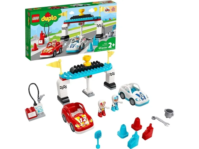 1. LEGO® DUPLO® Town Racerbilar (10947) är ett färgglatt lekset med racerbilar som sprudlar av fantasifulla lekar, utvecklingsmässiga fördelar och spännande rolleksmöjligheter att dela.