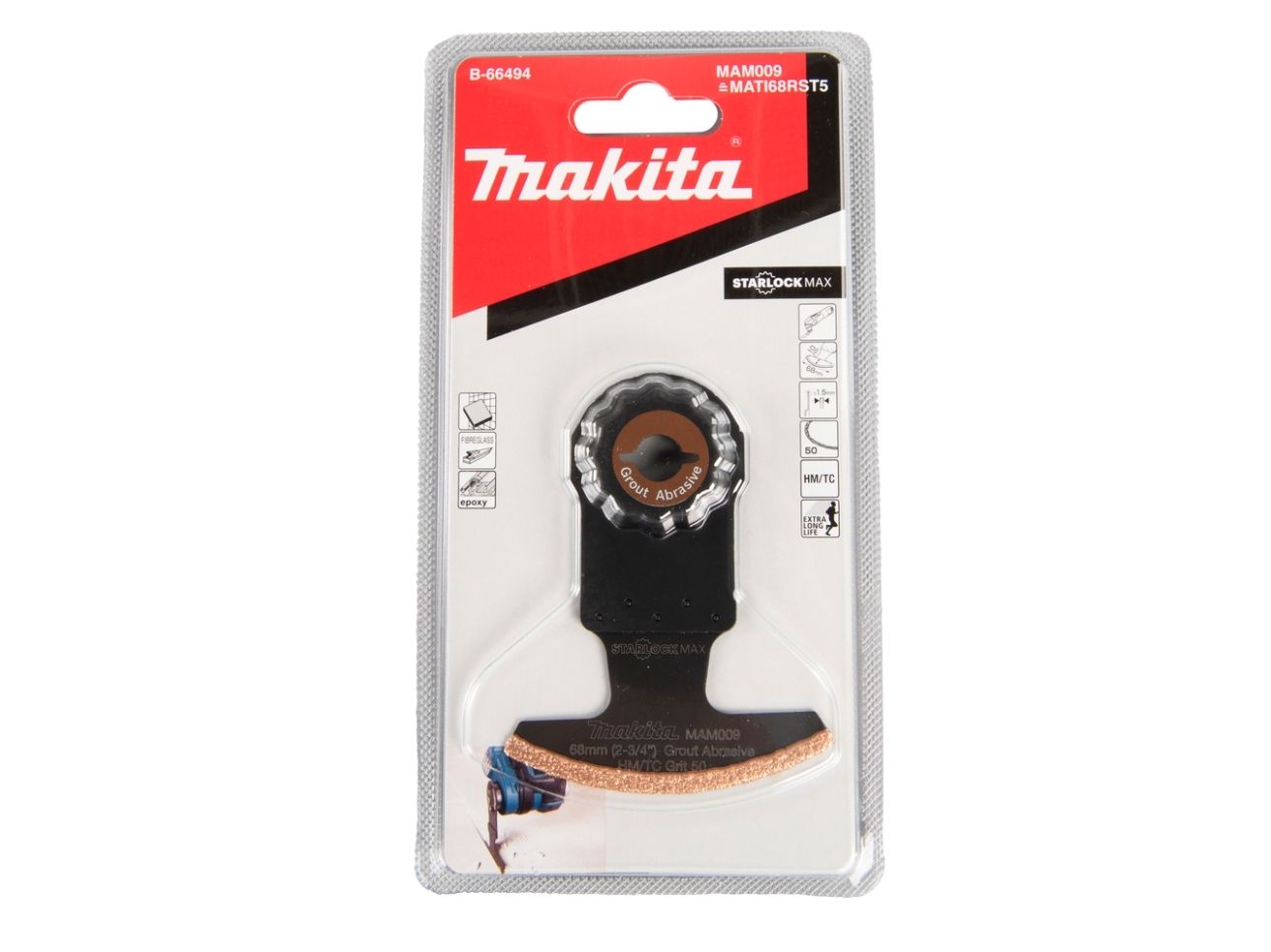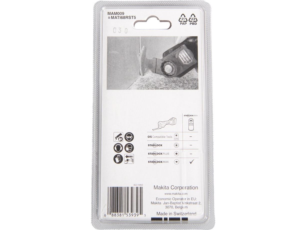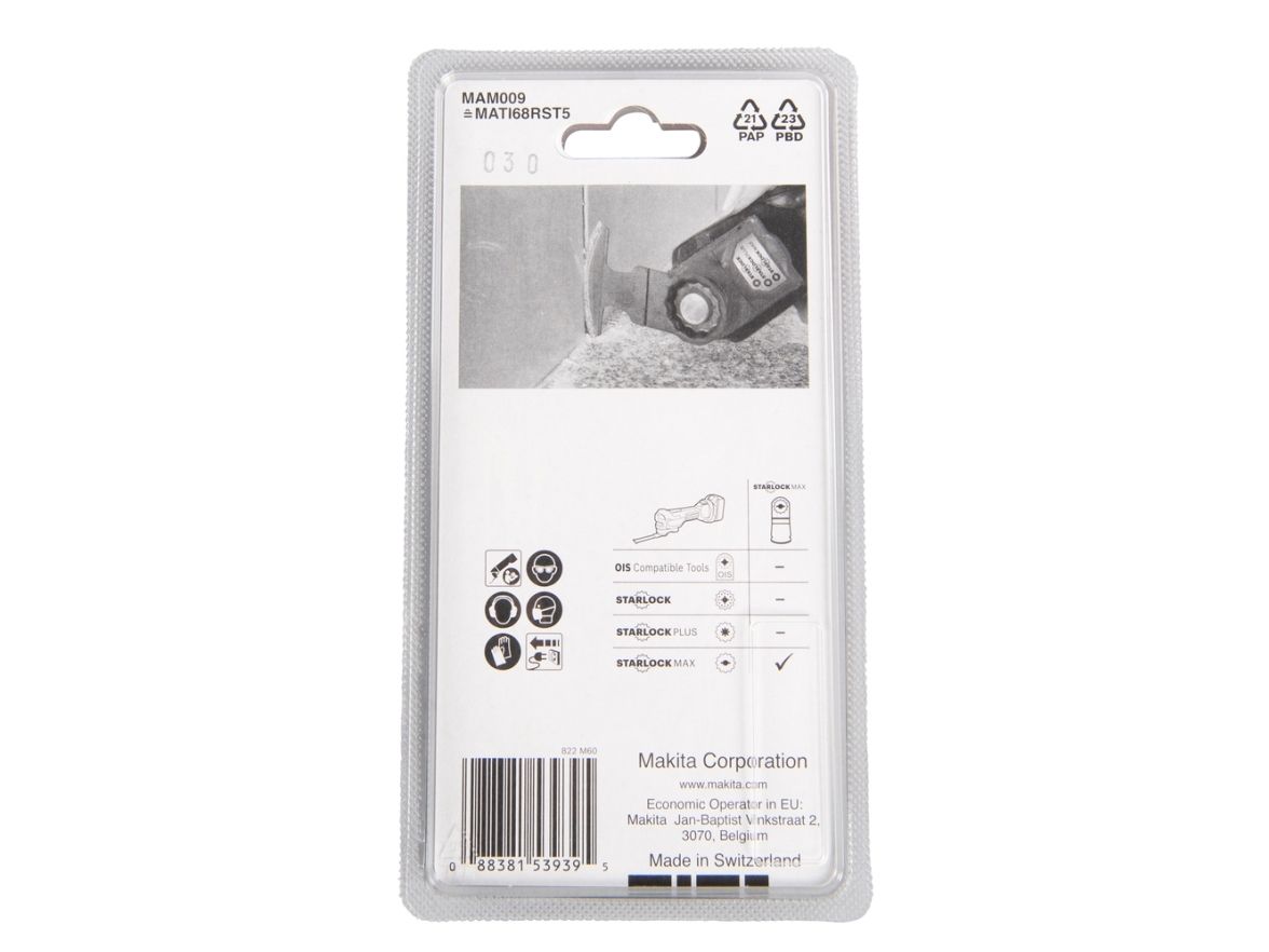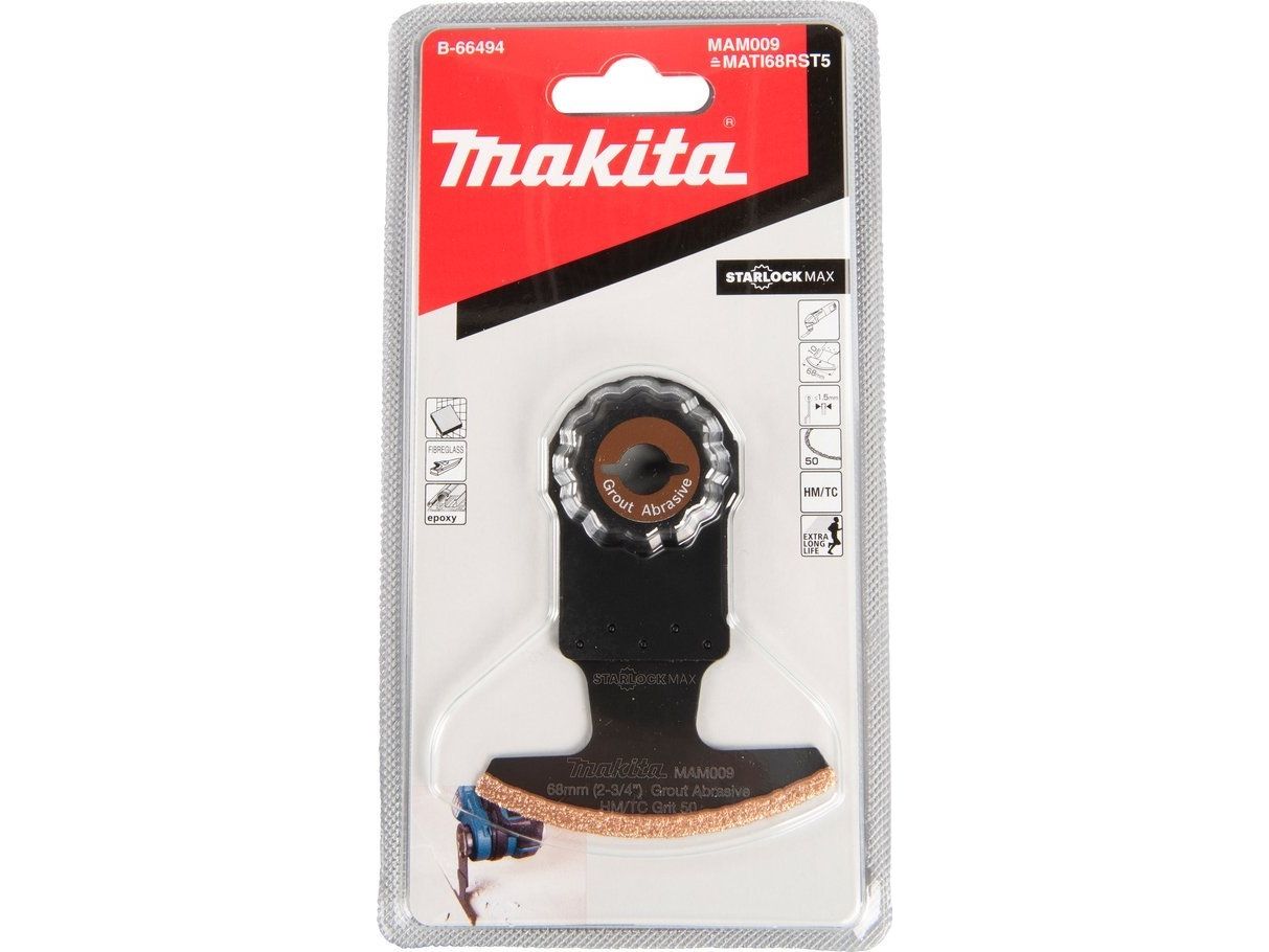 Makita multiverktygs HM-segmentblad B-66494 Starlock Max • 50G • TC/HM RIFF • MAM009 • för borttagning av cementbruk, kakel, fogmassa, glasfiber