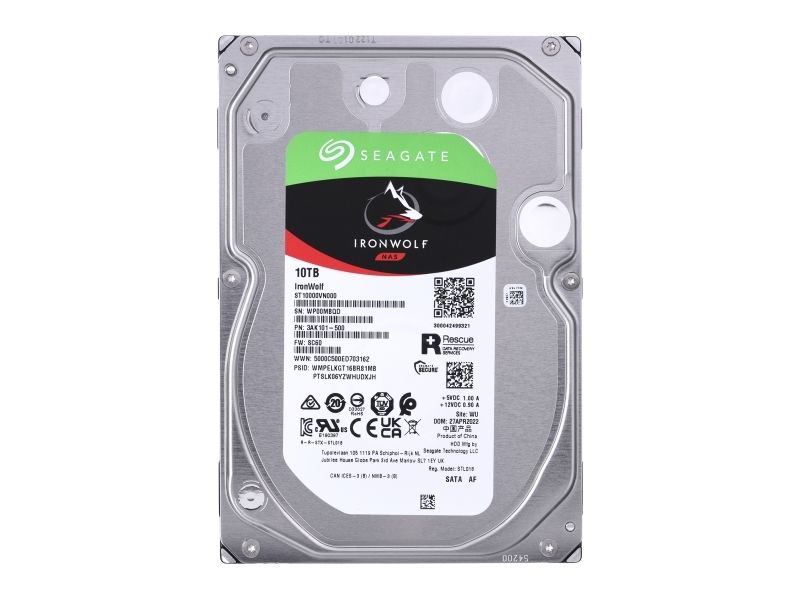 Seagate IronWolf ST10000VN000 - Hårddisk - 10 TB - inbyggd - 3.5" - SATA 6Gb/s - 7200 rpm - buffert: 256 MB - med 3 års Seagate Rescue Data Recovery