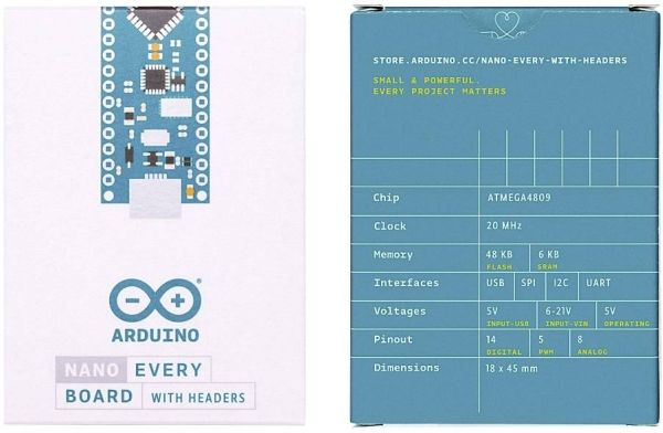 Dette lille, robuste og højtydende board har det samme klassiske nano-fodaftryk, der er populær i hele verden. Med den brugervenlige Arduino IDE kan der programmeres, som er tilgængelig offline og online. Begynd med tusindvis af open-source-skitser på få minutter, eller skriv din egen: Det er det perfekte valg til dine daglige projekter. Baseret på ATMega4809 AVR-processoren er Arduino nano Every fleksibelt tilpasset til kravene i dit design. Det kan bruges i et indstiksprint til montering af stiftlister eller som SMT, der takket være deres katingsplader loddes direkte på en printplade. En SAMD11 ARM Cortex M0 + -processor fungerer som kraftig USB-seriel-konverter, der kan omprogrammeres af erfarne brugere for at udvide anvendelsen af dette kort. Med monterede ledere.