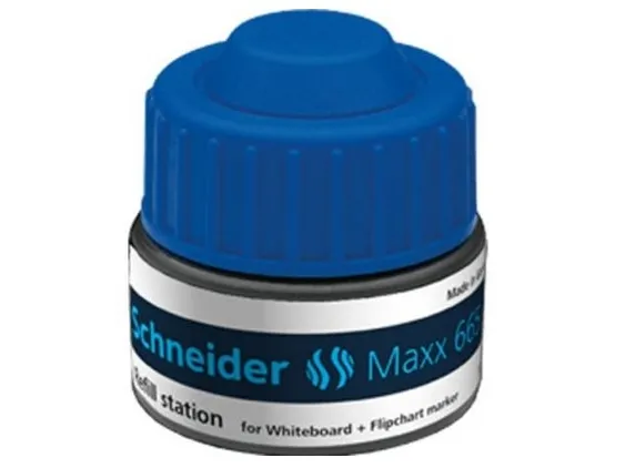 Refill station for Schneider Maxx 290 and 293 whiteboard and flipchart markers (after 2014). Contents 30 ml, colour: blue. Simply place the marker in the station and let it fill up automatically. There is no risk of overfilling.