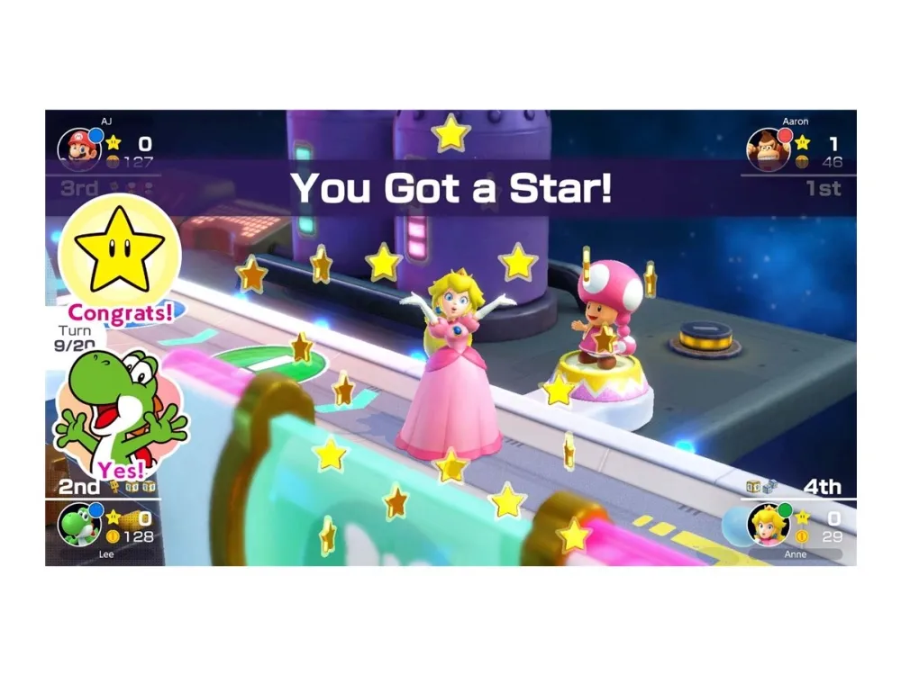 Ta med festen var som helst och spela när som helst, antingen lokalt trådlöst eller online. Spelar du med vänner i brädspelläget sparas varje runda, så ta gärna en paus när så behövs och fortsätt när ni vill köra igång igen. Använd klistermärken för att berömma eller plåga andra spelare på din jakt efter stjärnorna. Alla lägen har stöd för flera spelare online, så du kan hoppa in och spela med vännerna. Ta en runda minispel eller ett maraton på 30 rundor. Oavsett varifrån du spelar i världen är en seger i spelet en underbar känsla (och att stjäla stjärnor från andra är lika tillfredsställande).