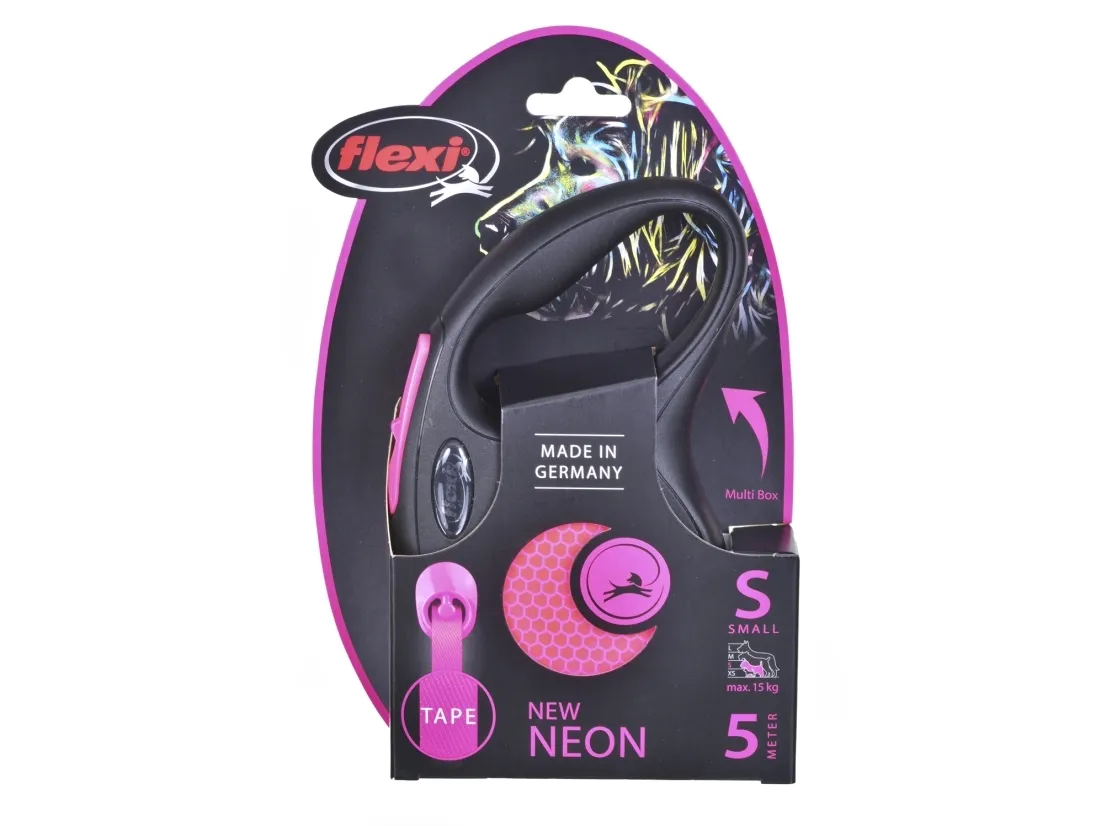 flexi Nytt NEON-band S, 5M, 15KG, svart/neonrosa