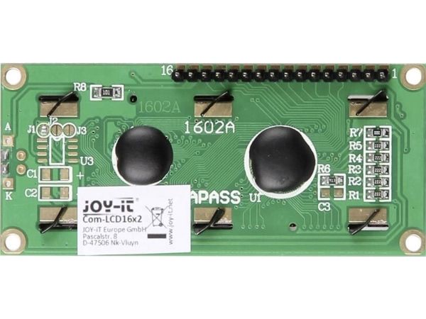 Joy-it COM-LCD 16x2 displaymodul 6,6 cm (2,6 tum) passar till Arduino, Raspberry Pi® med bakgrundsbelysning