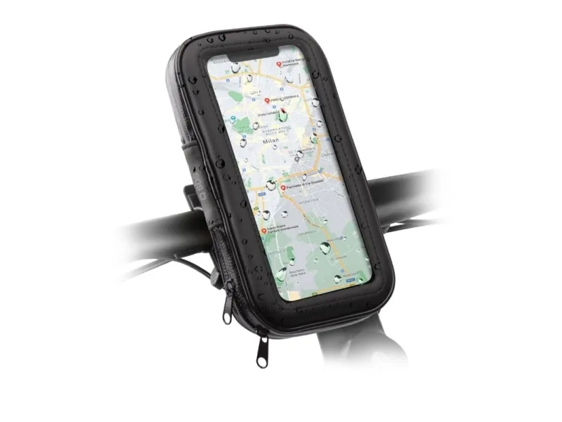 This rain-resistant mobile holder is designed to secure your Apple, Samsung, Huawei, Xiaomi or other brand smartphone to the handlebars of a bicycle or scooter while keeping it dry. Open the zip on the case holder and conveniently, quickly and safely store your device.