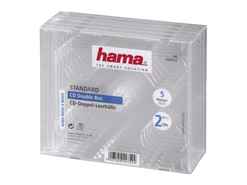 Hama CD Double Jewel Case, Pack 5, 2 diskar, Transparent, 142 mm, 125 mm, 51 mm, 278 g
