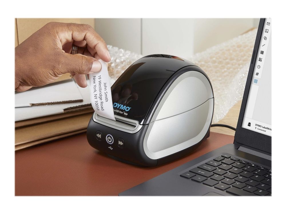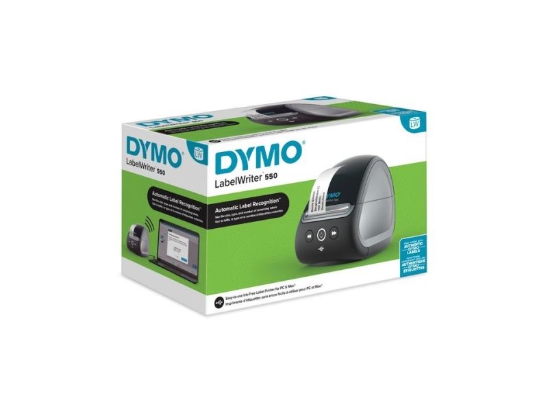 The DYMO LabelWriter 550 label printer comes with unique Automatic Label Recognition so you always know the size, type, and number of labels remaining. The direct thermal label printer replaces the need to buy costly ink or toner, while the portable size helps it fit into any modern workspace.