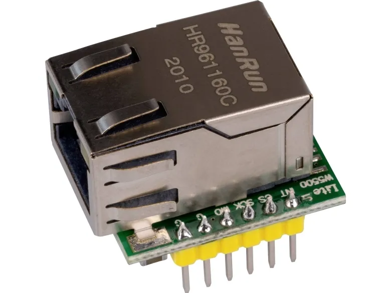 denna SPI - Ethernet-gränssnittskonverter kan din Arduino, Raspberry Pi Pico och liknande kort utökas med ett Ethernet-gränssnitt. Dessutom kan den tack vare sin design integreras perfekt i de mest varierande projekten.