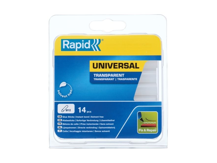 Rapid 12 mm Limstavar - Universal Transparent, 14 styck, Blåsa, 150 g, 135 mm, 118 mm, 19 mm