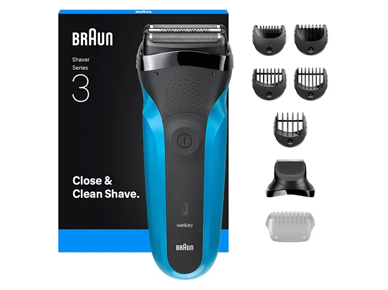 Braun Series 3 310BT. Shaver system: Foil shaver. Product colour: Black, Blue, LED indicators: Charging. Power source: Battery, Battery technology: Nickel-Metal Hydride (NiMH), Operating time: 30 min