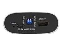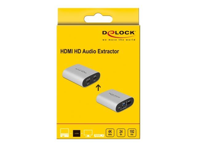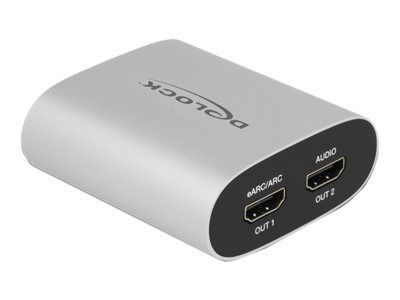 This adapter by Delock can be used to extract the audio signal from an HDMI transmission. While the video signal is displayed on a TV or monitor, the audio signal can be sent over the second HDMI port to a surround receiver. This allows an existing AV receiver or sound bar to be used even if no suitable Ultra HD connection is available. Unlike conventional digital S/PDIF audio outputs, the HDMI audio output can be used to transmit all modern surround formats to the receiver.