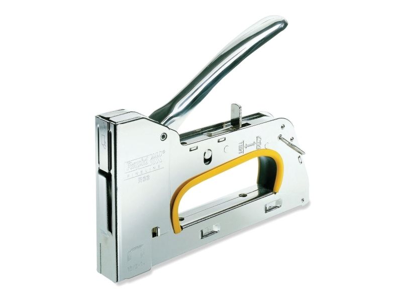 High durability, all steel staple gun. Suitable for heavy fabrics, canvas, leather, paper etc.