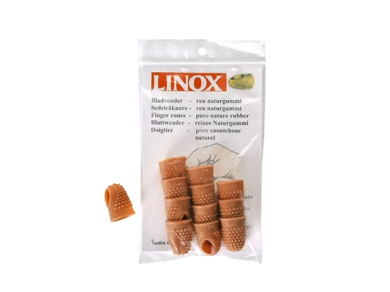 Bladvändare, Linox. Bladvändare i gummi. Gör det lättare att räkna sedlar eller bläddra i böcker eller stora pappershögar. Tillverkad av rent naturgummi med knoppar. Innehåller inga kända allergener. Storlek 4, 18 mm i diameter. Beställningsenhet: Förpackning med 12 stycken. Förpackning: 1/6