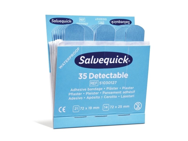 Salvequick plåster 35 Blue Detectable förpackning med 6 st