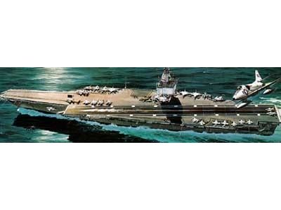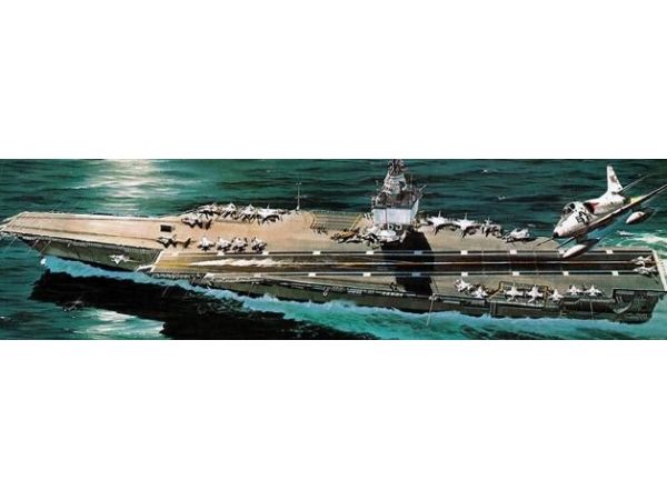 The nuclear-powered Enterprise is the first aircraft carrier of its kind and counts among the largest vessels ever built. The gigantic aircraft was put into service on 25.11.1961. Eight watercooled reactors generate a total power output of 300,000 HP with which the vessels achieves an average speed of 35 knots. She displaces 75,700 tons. The aircraft deck measures 76.8 m in width. On average there are 414 officers and 4260 crew on board. Since her nuclear power system makes the Enterprise independent of external supplies, it was possible to provide large fuel depots for the ship's aircraft. The largest and most modern aircraft of the US Navy can be operated from the Enterprise.