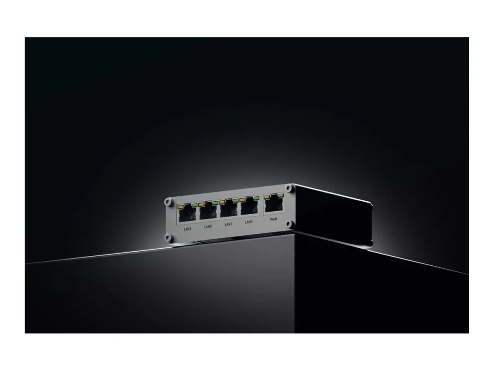 Aluminiumhus, stöd för VoIP-genomströmning, DHCP-relä, skydd mot DDos-attacker, VPN-stöd, stöd för passiv PoE