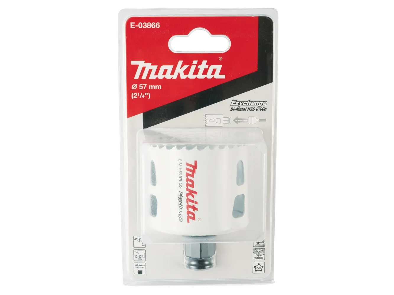 Makita E-03866, Enkel, borr, stål, aluminium, plast, trä, rostfritt stål, vit, bimetall, 4,4 cm