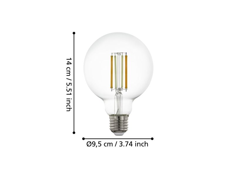 Eglo Connect-Z - LED-glödlampa med filament - form: G95 - E27 - 6 W (motsvarande 60 W) - klass E - tonbar vit - 2200-6500 K - transparent