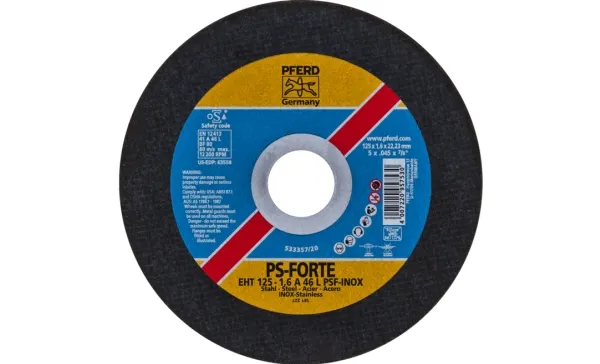 universalverktyg i hårdhet L med hög skärförmåga och god hållbarhet för kylning.Slipmedel: Aluminiumoxid A tillverkad utan tillsats av järn-, klor- och svavelhaltiga fyllmedel.