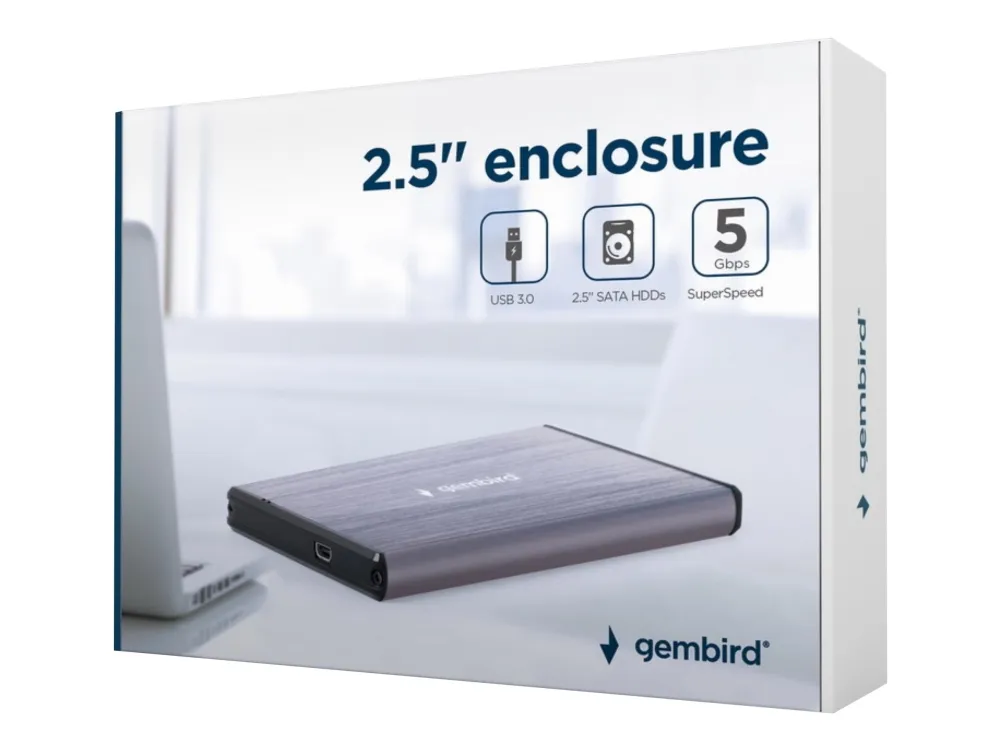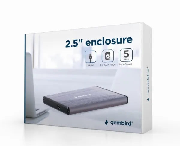 Gembird EE2-U3S-3-LG - Förvaringslåda - 2.5" - SATA 6Gb/s - USB 3.0 - ljusgrå
