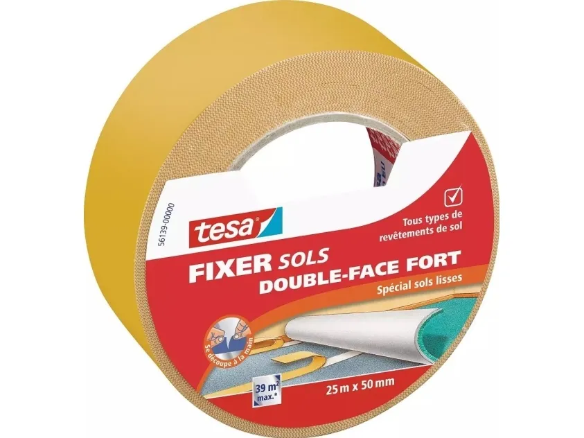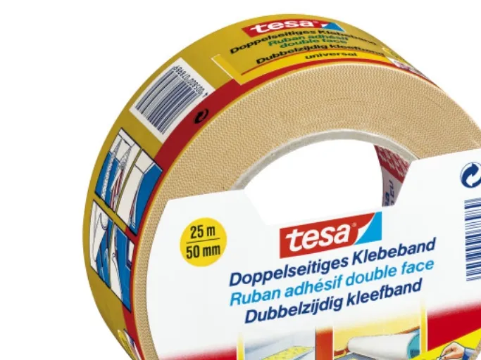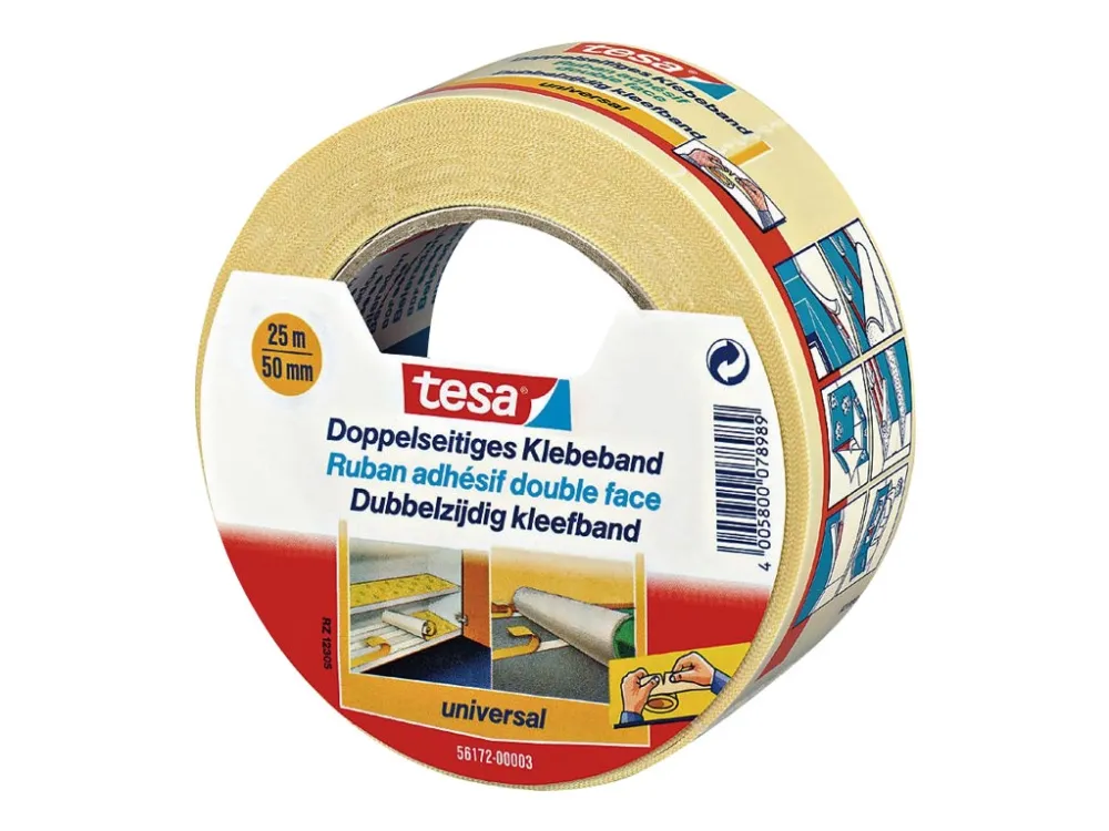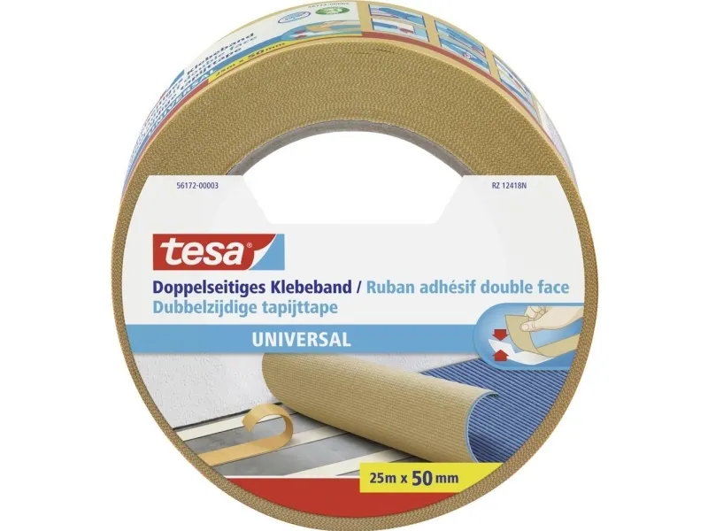 tesa universal dubbelhäftande tejp är avsedd för mattläggning och permanent montering av olika material.