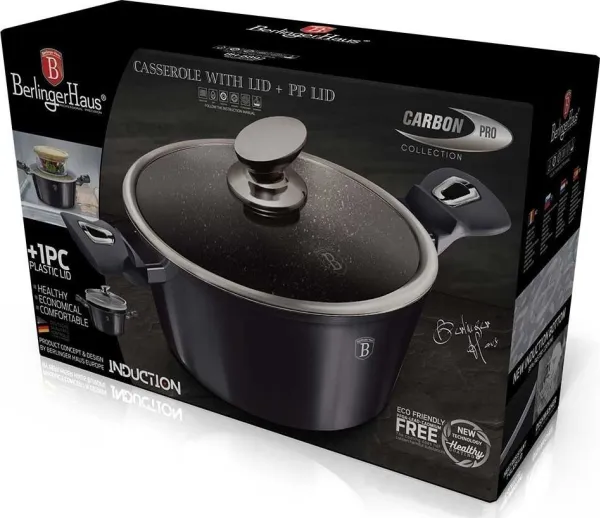 1 x Berlinger Haus - Gryde ø28 cm / 6,1L - Med glåslåg - El / Gas / Induktion - Carbon Pro Edition