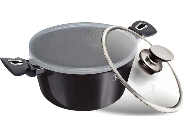 Materialerne fra Berlinger Haus af høj kvalitet, som er med til at give fremragende varmeledningsevne og tillader maden at blive tilberedt jævnt på alle sider. Med det tredobbelte lag af marmorbelægningen vil maden ikke brænde eller klæbe. Det ergonomiske soft-touch håndtag giver et godt greb og sikker madlavning, da det forbliver køligt under madlavningen. Denne gryde er praktisk såvel som stilfuld og moderne med den dejlige metalliske grå farve. Det er muligt at stable gryden, hvilket gør den til et essentielt redskab for ethvert stort eller lille køkken og vil spare dig for den hårdt tiltrængte plads til andre ting. Ved hjælp af låget skal du ikke længere flytte maden over i en separat beholder, før du opbevarer den i køleskabet.