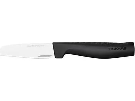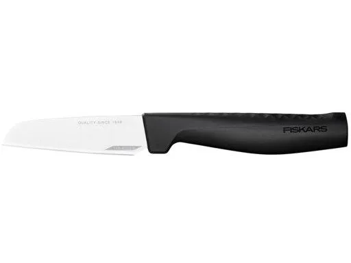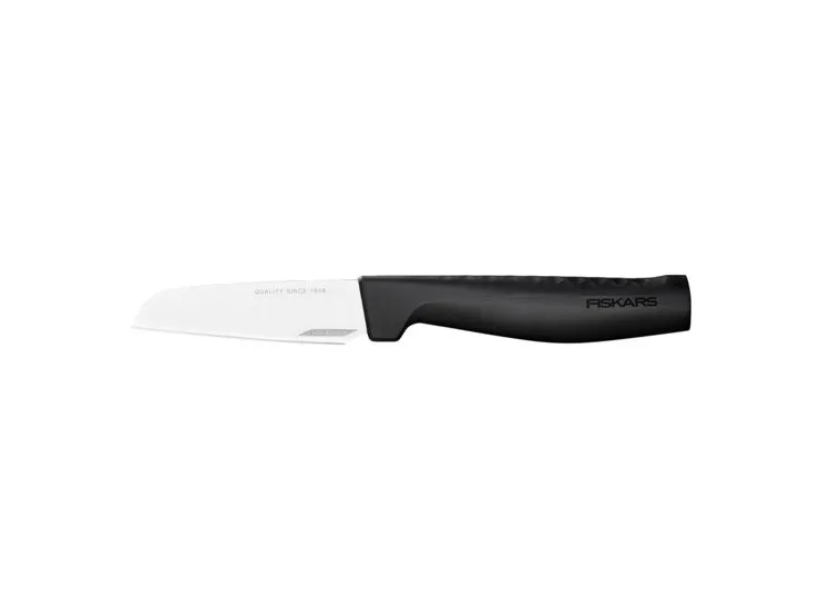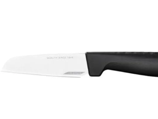 Discover the Fiskars Hard Edge peeling knife, a kitchen essential that combines functionality with safety. Crafted with a stainless-steel blade that boasts a hardness of HRC 52 and enhanced with LZR-EDGE technology, this knife is designed to meet the demands of both professional chefs and home cooks. Its 8.8 cm blade is perfect for precise peeling tasks, ensuring minimal waste and maximum efficiency. The integrated finger guard and ergonomic plastic handle provide a comfortable and secure grip, making your peeling tasks safer and more enjoyable. Whether you're preparing a gourmet meal or a simple snack, the Fiskars Hard Edge peeling knife is your go-to tool for easy, precise, and safe peeling.