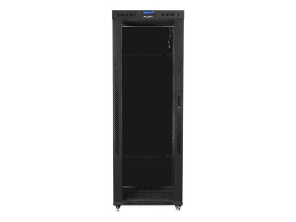 Lanberg V2 rackskåp är utformat för optimal organisering och skydd av din utrustning. Med en viktgräns på 1200 kg garanterar det här robusta metallskåpet tillförlitlighet och stabilitet för dina viktiga enheter. En LCD-display gör det enkelt att övervaka förhållandena i skåpet, medan termostaten ger automatisk temperaturreglering för ökad säkerhet. Skåpet har en glasdörr och en bakdörr i metall och kombinerar säkerhet med synlighet, vilket gör det enkelt att kontrollera utrustningens status med en blick.