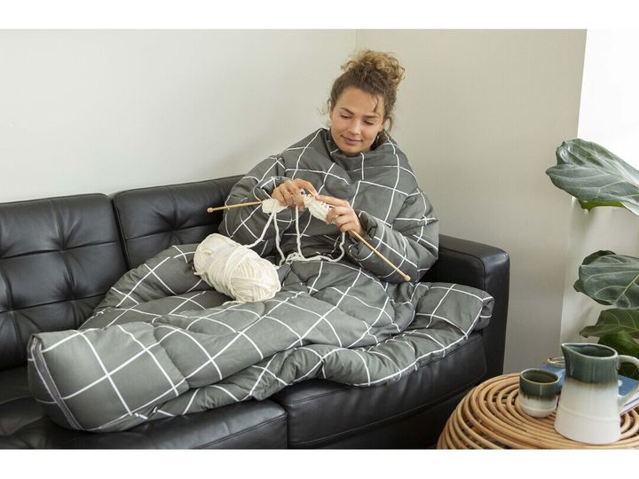 Varm, hyggelig og blød hyggedyne med ærmer. Rummelige ærmer giver dig friheden til at læse, strikke, hækle, snacke eller arbejde på din bærbare computer, mens du forbliver varm, lun og hyggelig. Spar på varmeudgifterne med denne luksusdyne med ærmer - ideelt til at slappe af derhjemme, lange ture i bilen, og selv til camping. Hyggedynen er en perfekt gave til enhver lejlighed, hvad enten det er Jul, Mors eller Fars dag, fødselsdag, Valentines eller blot for at sige tak!