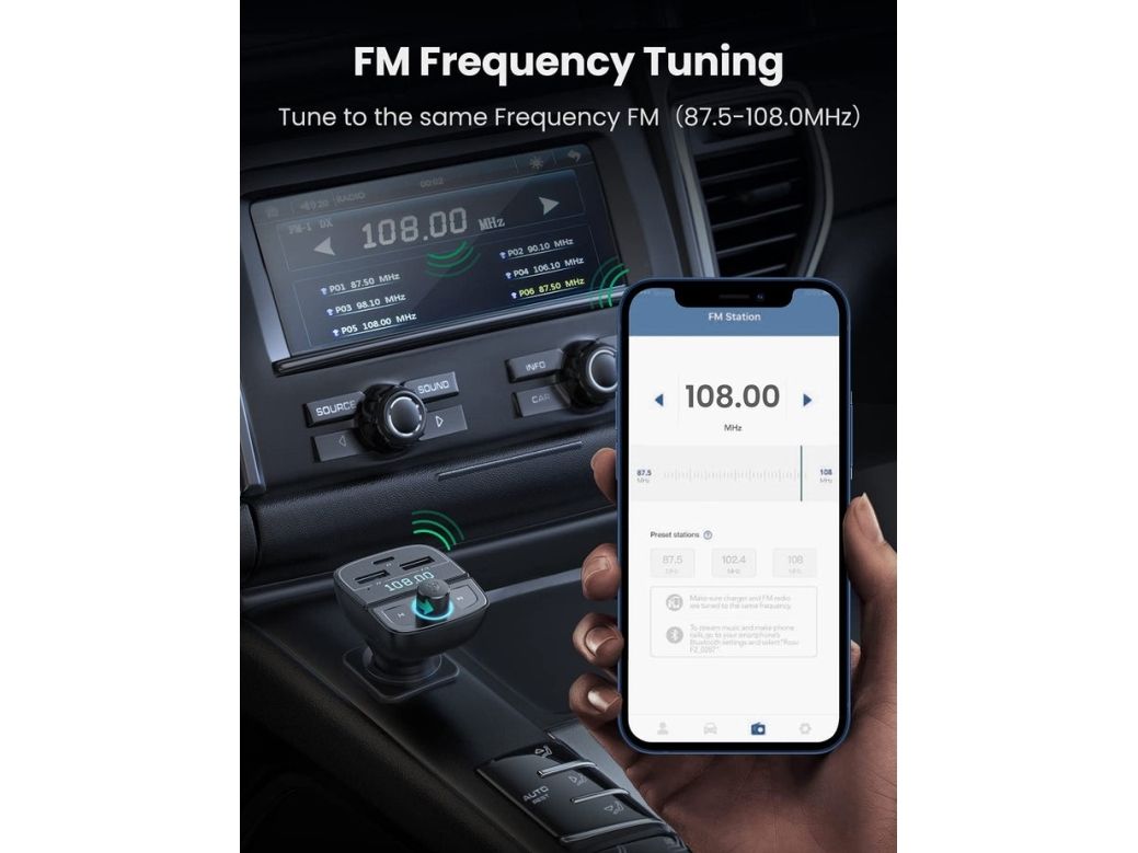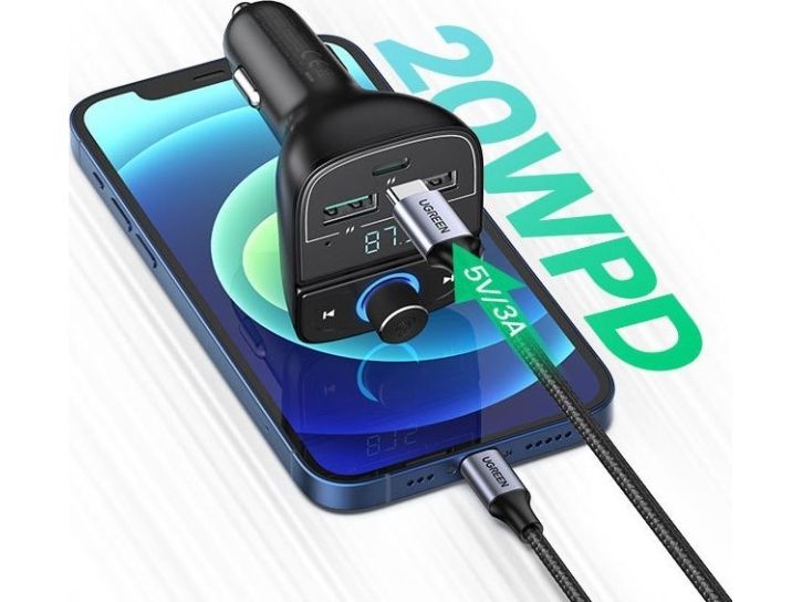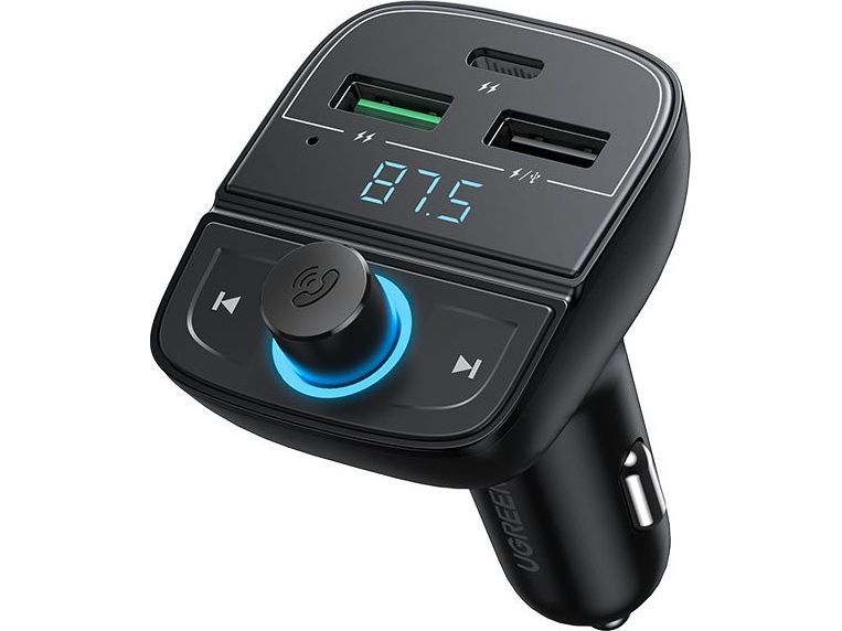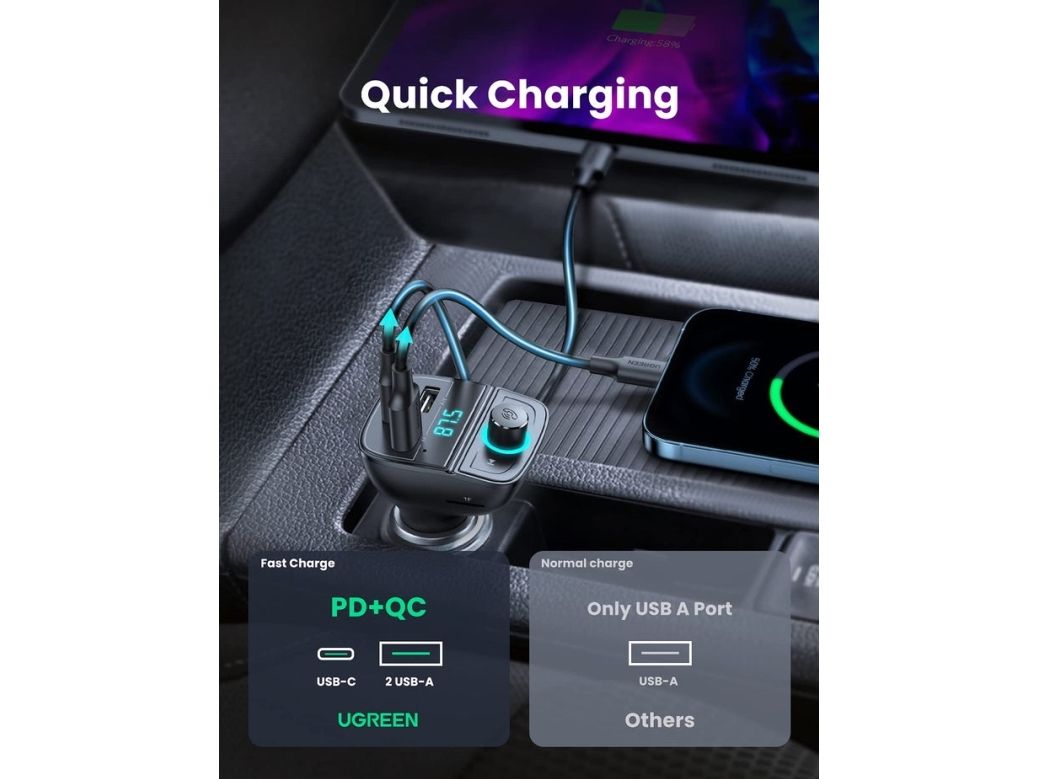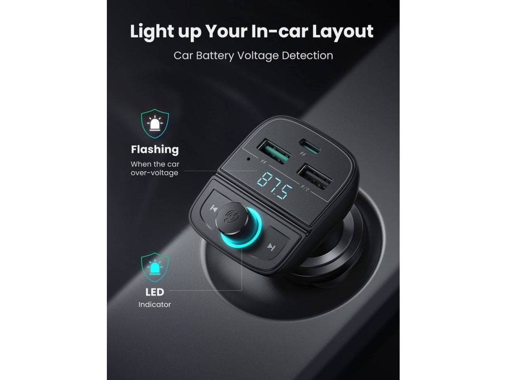 Ugreen [AI generated title] Biloplader / FM-Sender Med Bluetooth 5.0 3 Usb Porte, USB, iPhone, Sort, Cigartænder