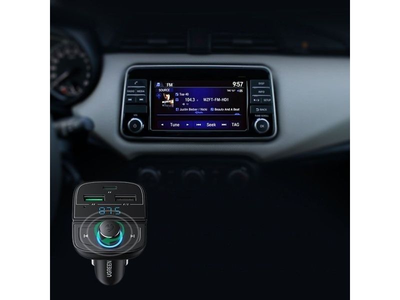 FM-sändare UGREEN CD229, Bluetooth 5.0, USB QC 3.0, USB-C PD, microSD (svart)