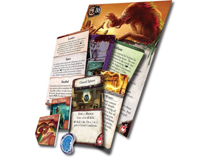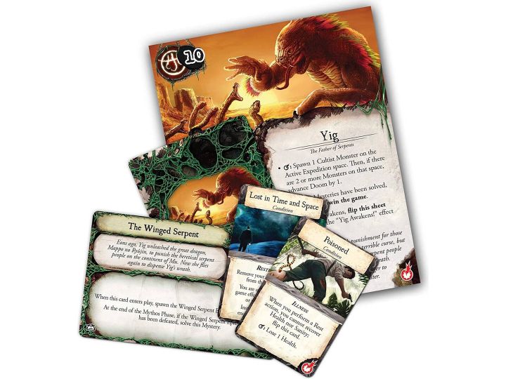 Meanwhile, Yig’s cultists and Serpent People work to prepare the way for the Father of Serpents to dominate our planet. With the help of powerful new Spells and Assets, along with mighty new Arfifacts, Investigators must once again race across the globe in order to prevent humanity’s destruction in Forsaken Lore.