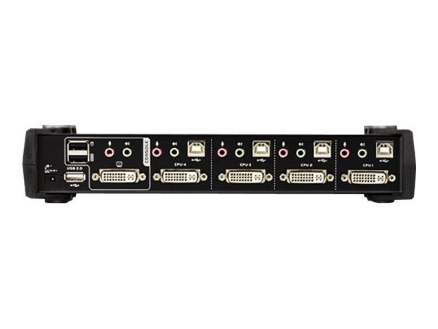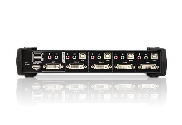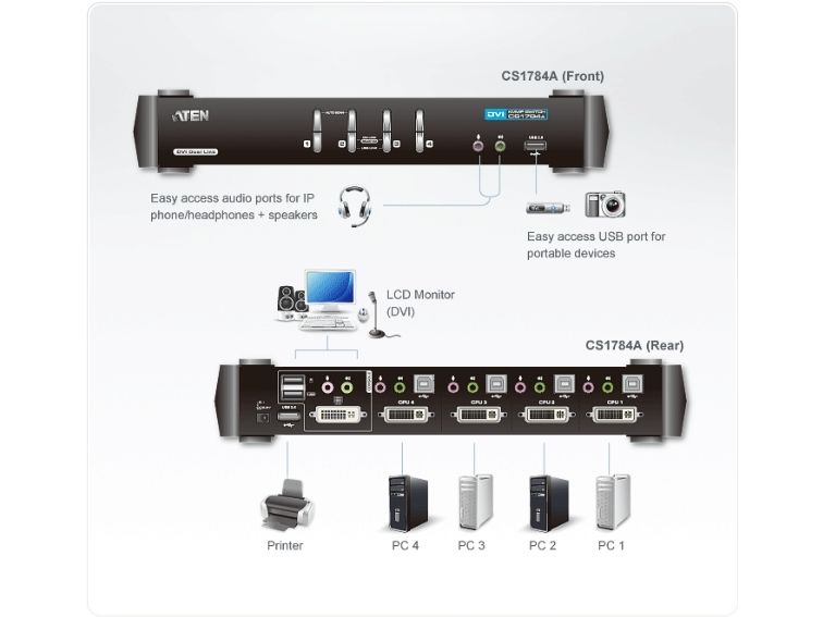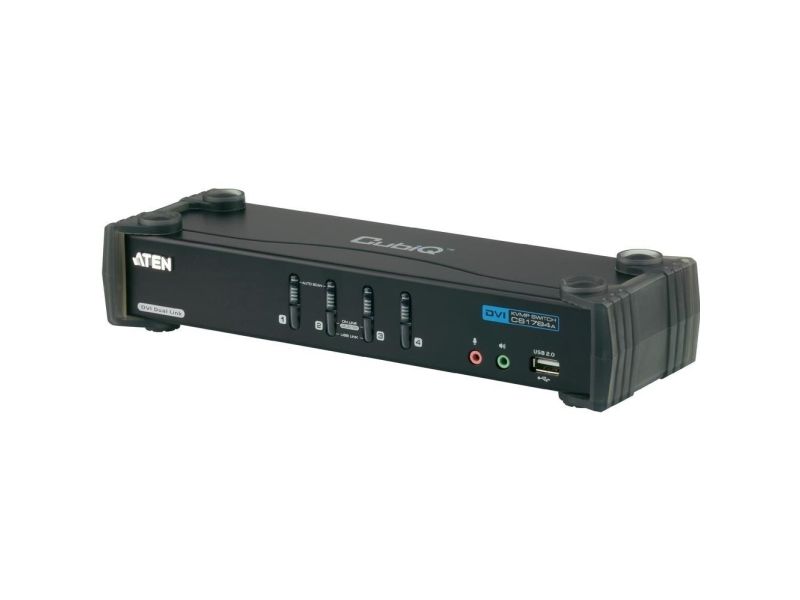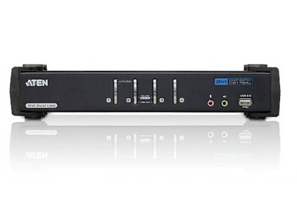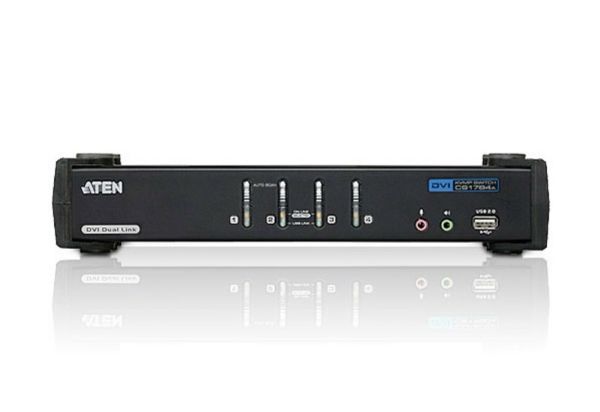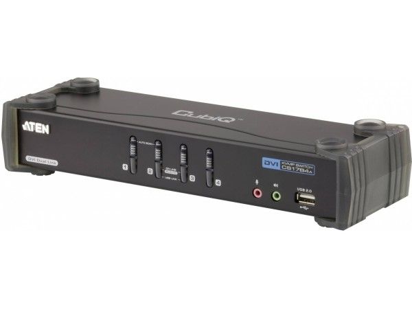 The CS1784A USB DVI dual link KVMP switch combines the capabilities of a 4-port KVM switch with a 2-port USB hub, while providing a DVI monitor interface and audio support. Moreover it carries advanced features, such as 120 Hz 3D display support, gaming keyboard compatibility and port selection/switching using a mouse, aimed at giving you flexibility, convenience and enjoyment.