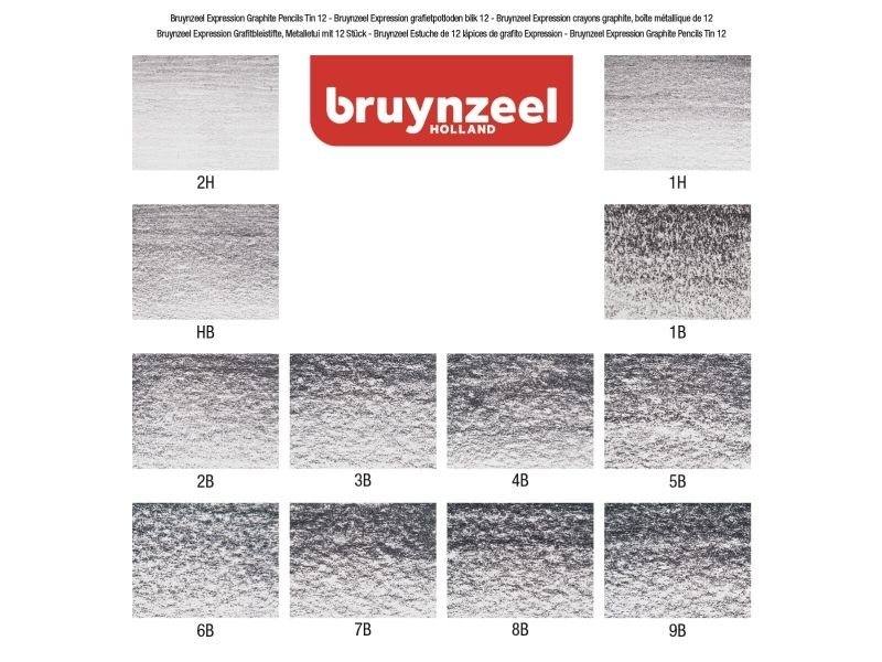 12 high quality graphite pencils with a strong, thick core ranging from 2.2 to 3.6 mm. Excellent graphite transfer and perfect balance of the pencil hardness.
