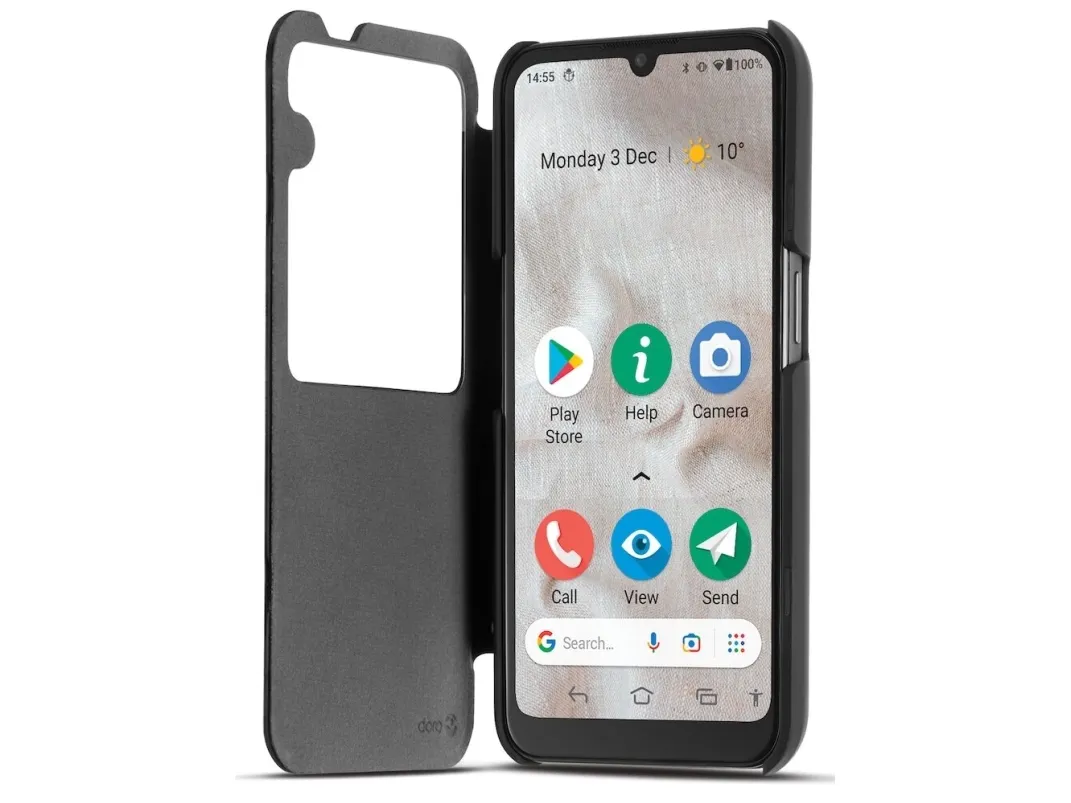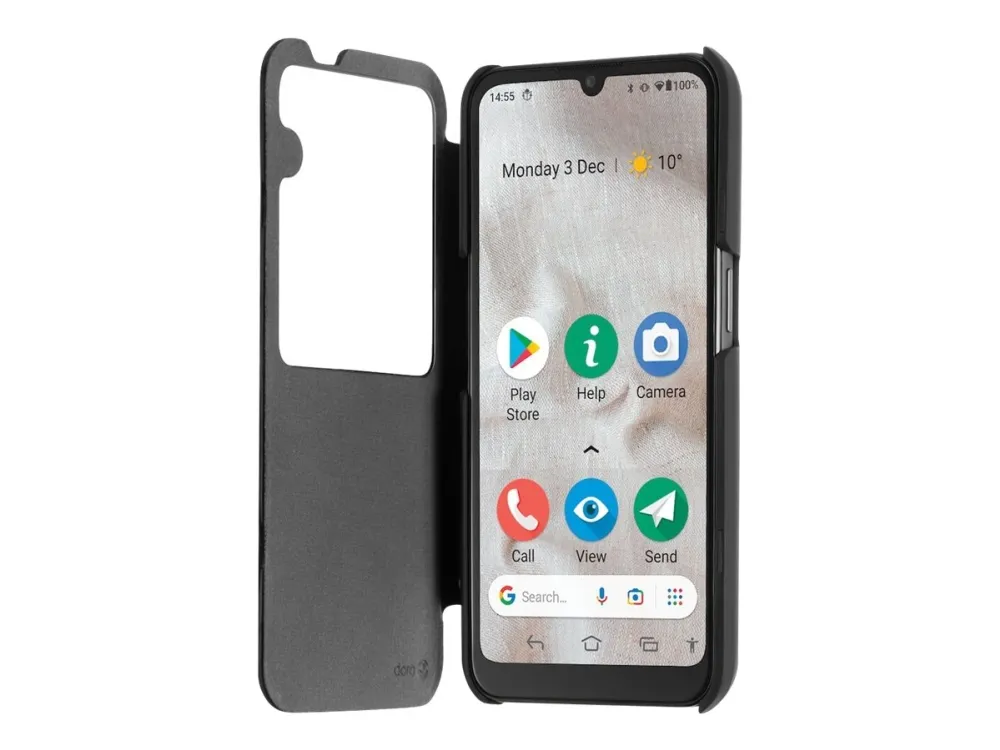 Doro - Vikbart fodral för mobiltelefon - displayfönster, +på/av-funktion - svart - för DORO 8110