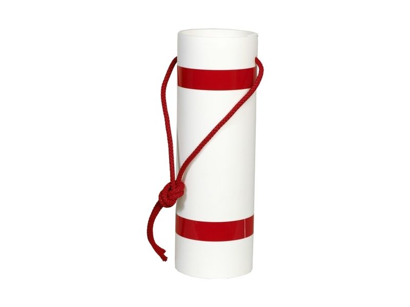 Långvarumarkerare ø100mmx30cm - Vit plastcylinder, med röd reflekterande tejp och med monterad sladd