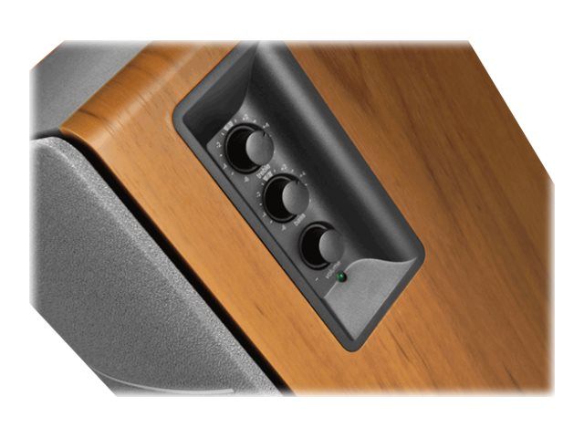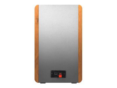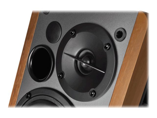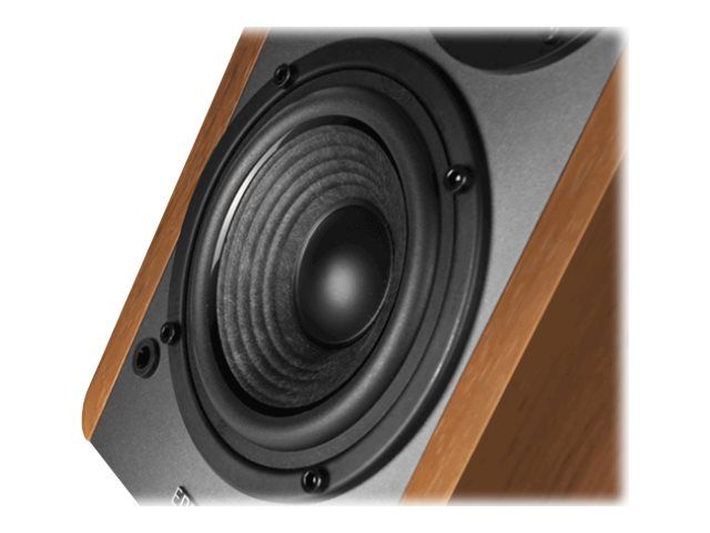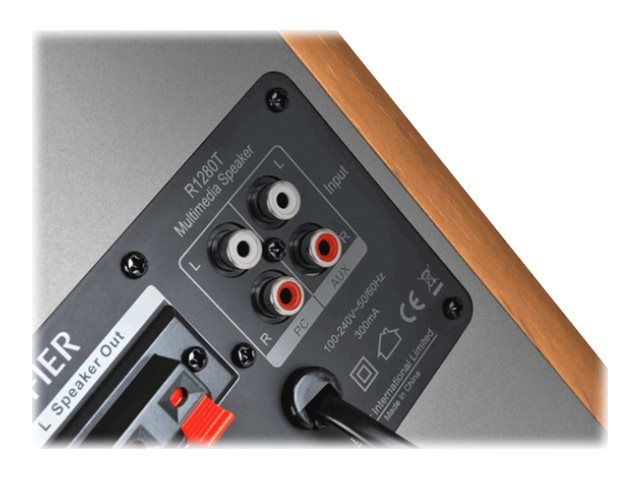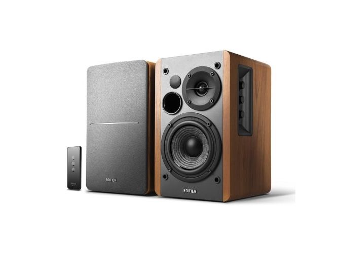 Equipped with dual RCA inputs the R1280T can produce up to 42W RMS of audio output. A 4 inch bass driver and front facing bass reflex port ensures bass notes are robust and rich in sound. Connect to multiple devices and personalize your listening experience with the bass and treble adjustment dials located on the active speaker. A remote control also controls the volume and mute function.