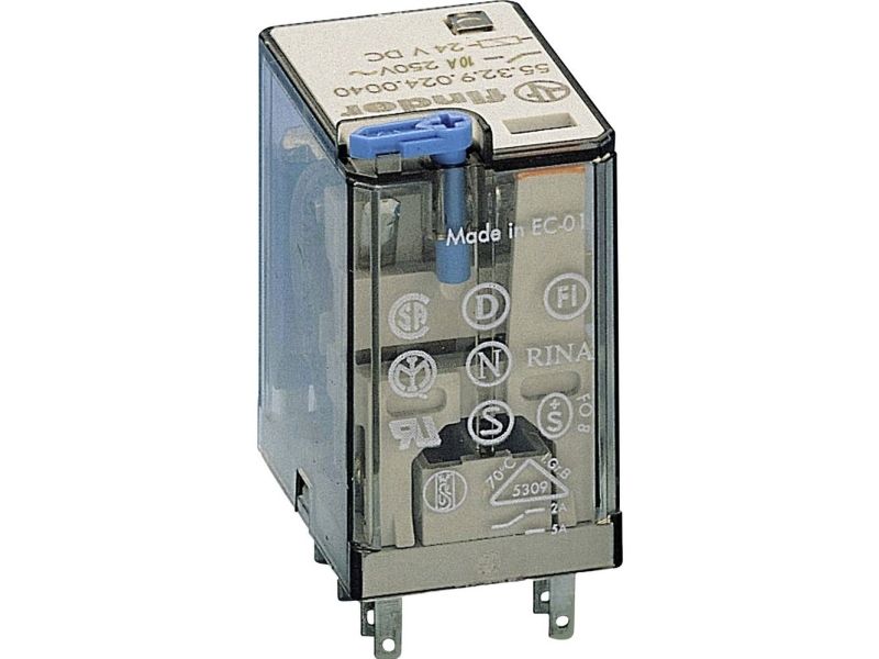 FINDER industrirelä 10A (20A), 2CO, 24VDC för sockel, serie 94 – låsbar testknapp, dubbel LED (ej polariserad) och mekanisk indikator