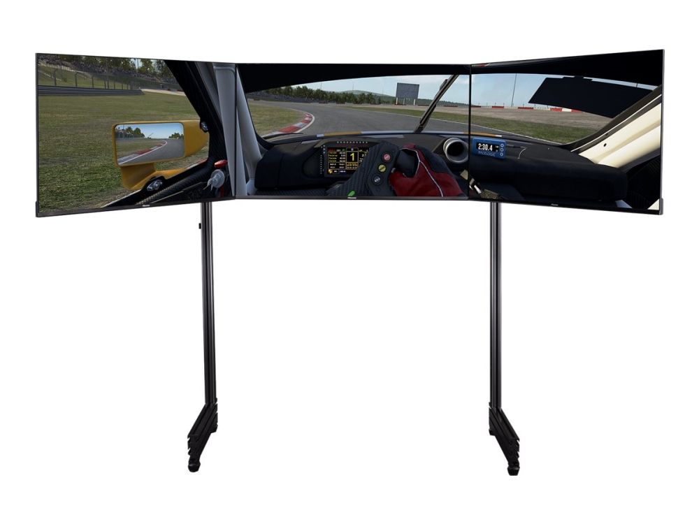 The Next Level Racing Elite Triple Monitor Stand Add On transforms the Elite Freestanding Single Monitor Stand into the ultimate triple screen solution. The unparalleled strength of the aluminum extrusion means it supports three 21"-43" screens with the included VESA mounts and includes height-adjustable feet, custom cable management clips and a spirit level for the perfect immersive racing simulator cockpit setup.