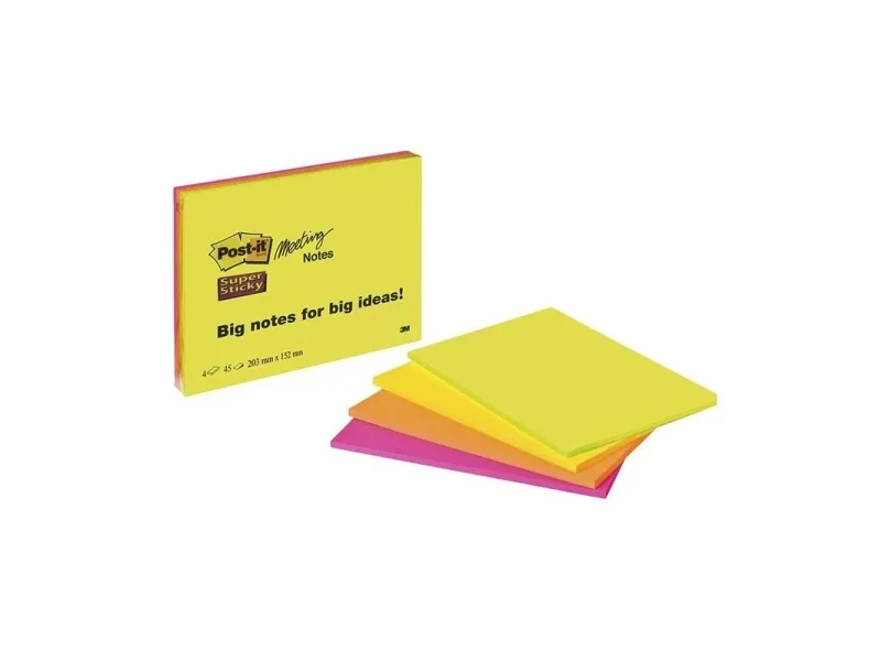 Post-it® Super Sticky Meeting Notes, neonfarver, 152 mm x 203 mm, pakke a 4 stk.