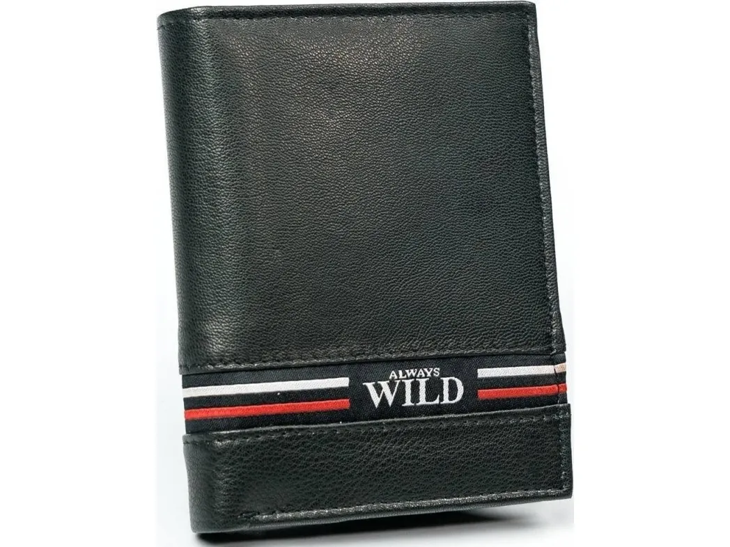 Kemer Plånbok för herrar i vertikalt läder utan spänne med dekorativ kant