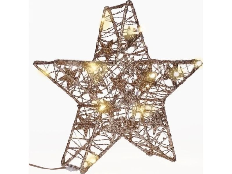 Solight Solight Julstjärna glitter, guld, metall, 14x LED, 2x AA