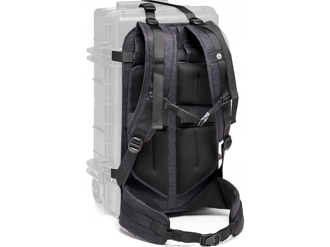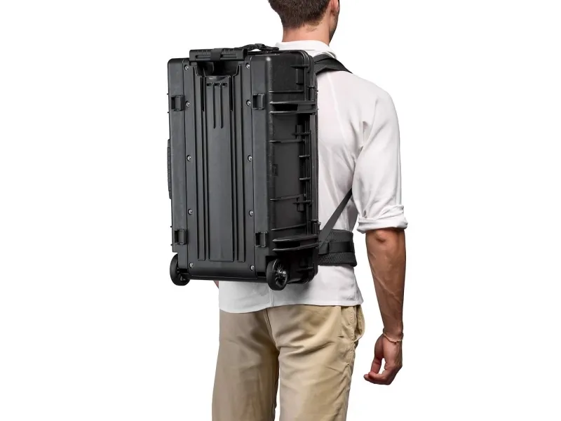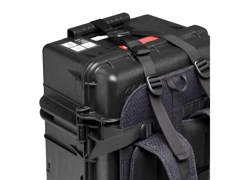 The Manfrotto PRO Light Tough Harness System is an exclusively designed solution compatible with Manfrotto PRO Light Tough hard cases*: through 4 conveniently placed metal pins positioned on the front panel of the Manfrotto Tough cases, the Tough harness System can be easily connected trough a strong and durable adjustable strap system to allow you to carry the Tough hard case like a backpack.