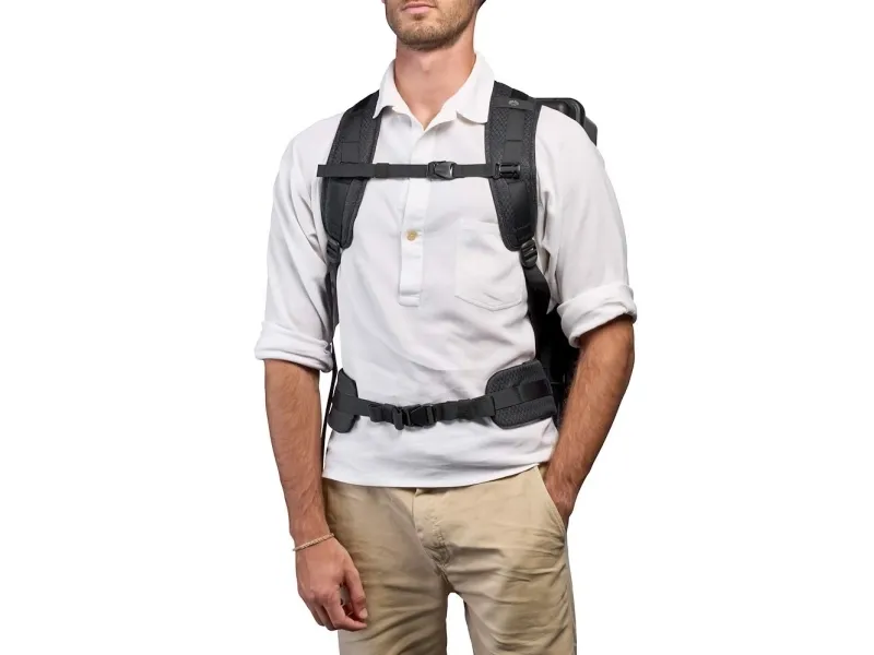 This Harness System allows you to convert your Tough hard case to a backpack when you can't roll the bag on the ground to the rough or rocky terrain, or simply when you need to be faster and agile. The harness system is provided with a chest strap, a padded waist belt, and a padded backpanel to enhance comfort. Additional straps with buckle closure are also included which can be attached to the closed retractable handle for added stability and weight distribution. All fabrics are treated to be water repellant.