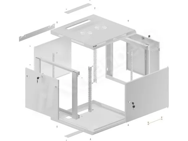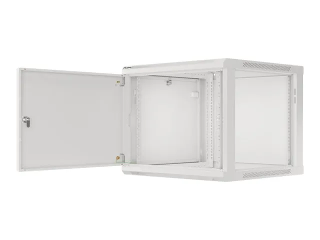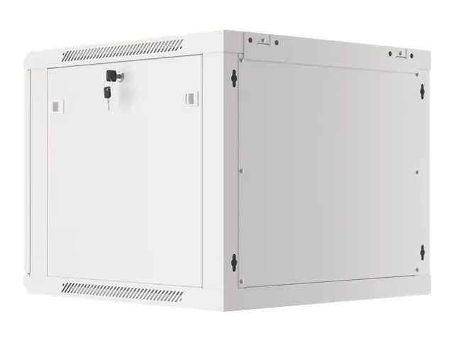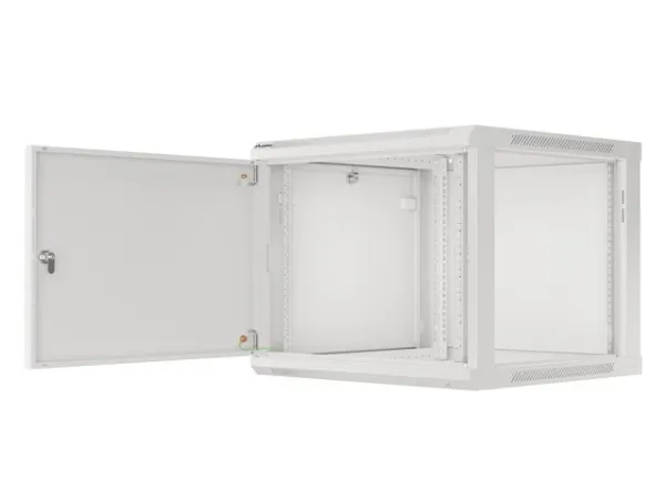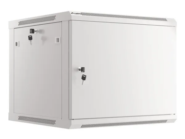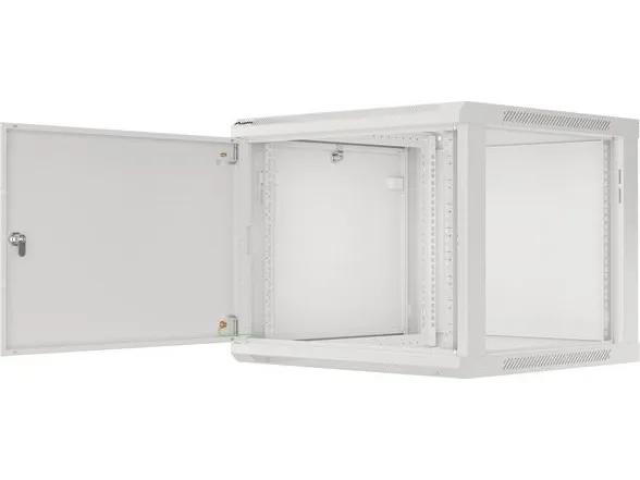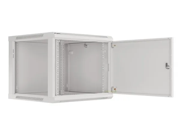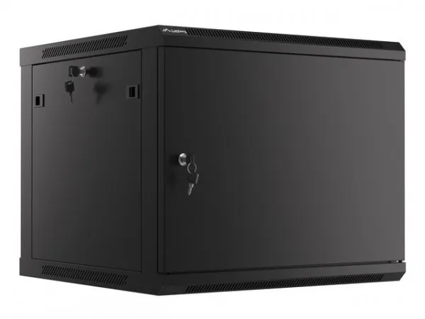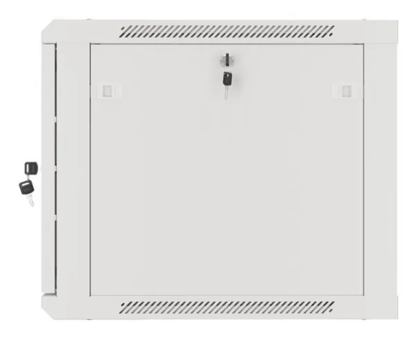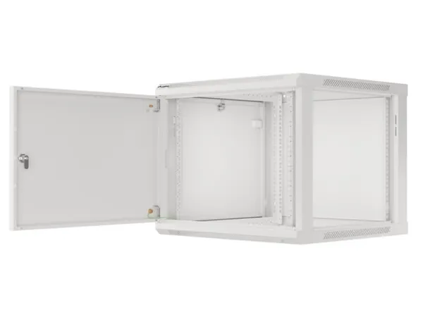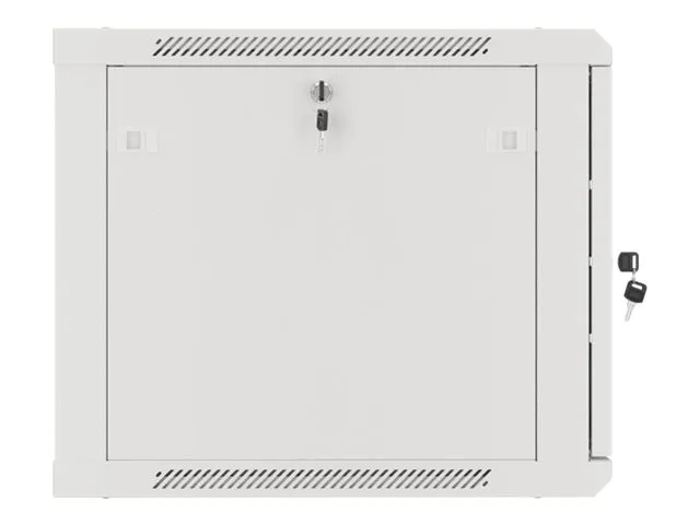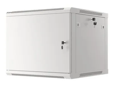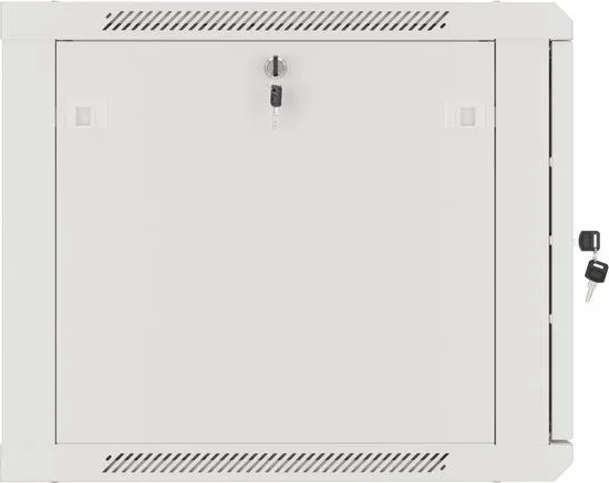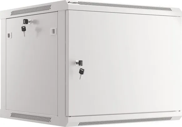 Wall mount, single section Lanberg cabinet WF01-6609-00S is a solution designed to expand networks, installation of cabling and equipment in size 19" with max. 60kg loading capacity. It can be used in networks, server rooms, small and medium businesses. It can also work in low voltage systems such as cable television networks, alarm systems, fire protection systems and access control systems, CCTV and IP surveillance. Appropriate design allows simple self-assembly. Cabinet is characterized by IP20 degree of protection, opening front door with possibility of rotating to 180° with lock, removable side panels (locks included). The cabinet has cable entry panel on top and bottom cover. This product is made of high-grade cold rolled steel.